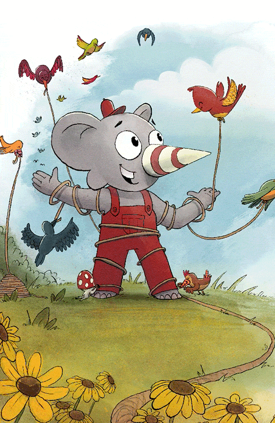 Mir war klar, das die beiden Bilder – so wie sie waren – eher eine demotivierende Kindergeschichte ergeben würden. Dennoch blieb die Idee von einem Elefanten, der gerne ein Vogel wäre um zu Fliegen hängen. Im Laufe der Zeit habe ich immer mal wieder versucht aus der Idee eine Geschichte zu schreiben, doch das hat nie so richtig funktioniert.