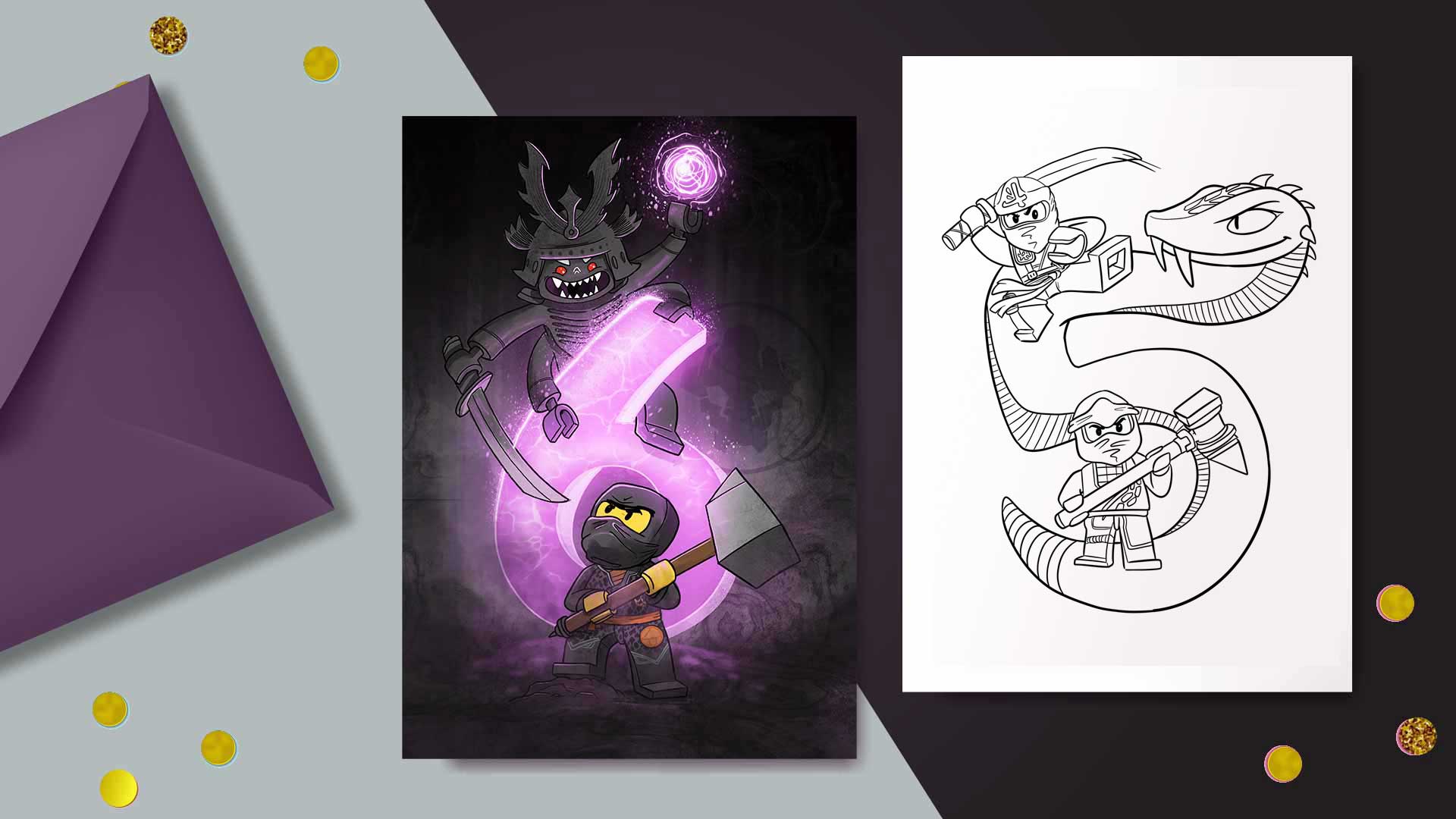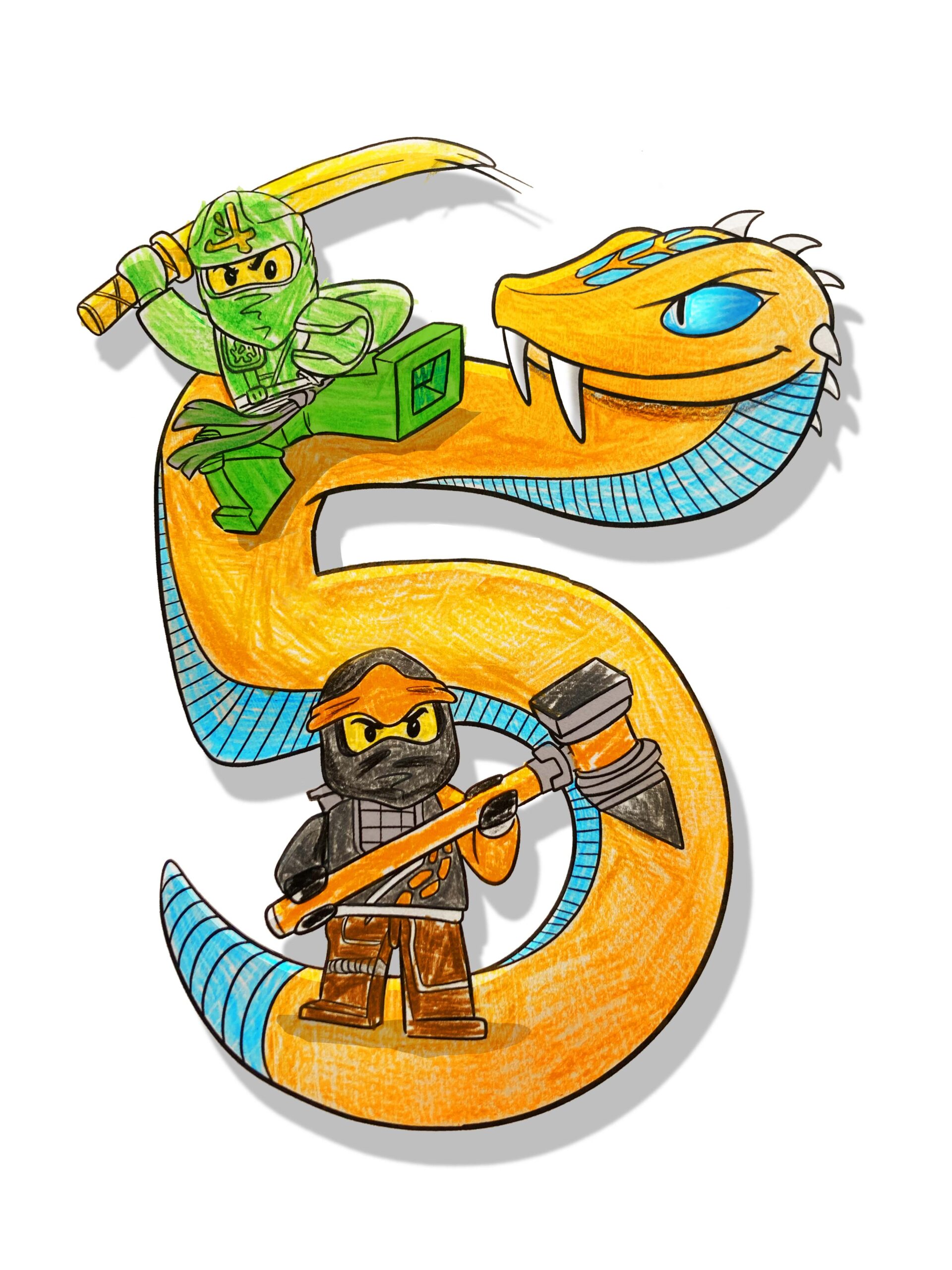 Seit dem dritten Geburtstag von unserem Sohn zeichne ich die Einladungskarten für Kindergeburtstage bei uns. Unser Großer ist riesen Ninjago-Fan – das sieht man daran, dass jetzt schon die zweite Einladung in Folge von einem Ninjago-Motiv verziert wird.