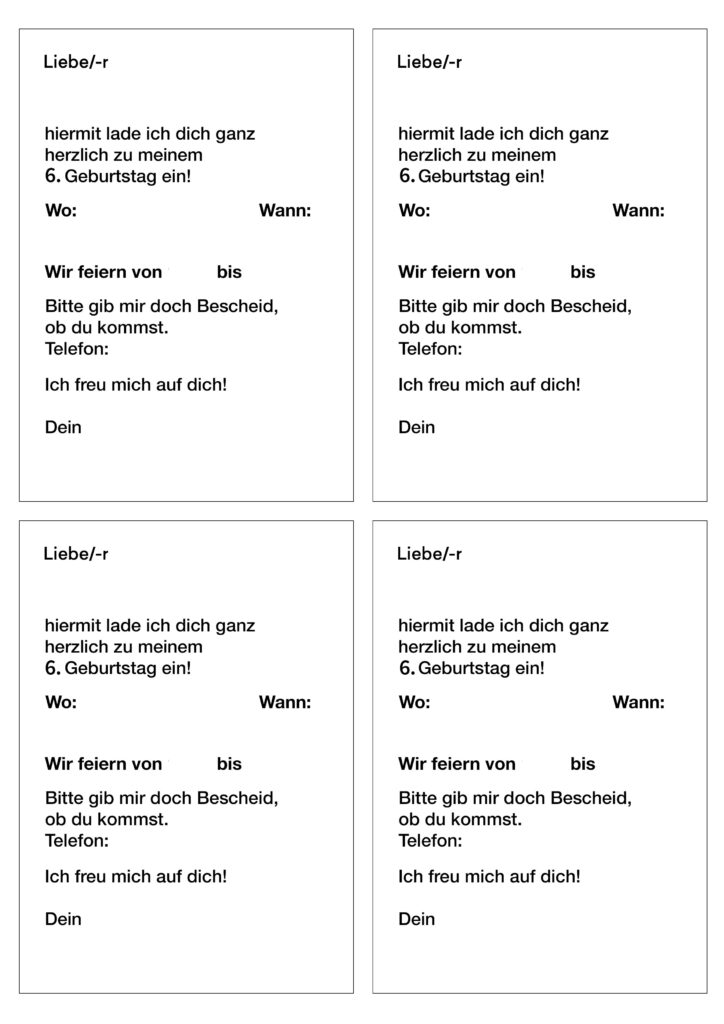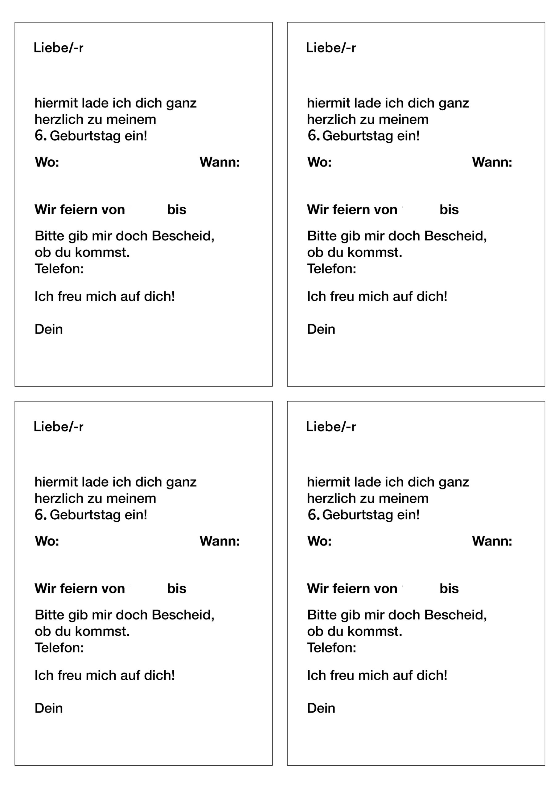 Einladungskarte 6ter Geburtstag